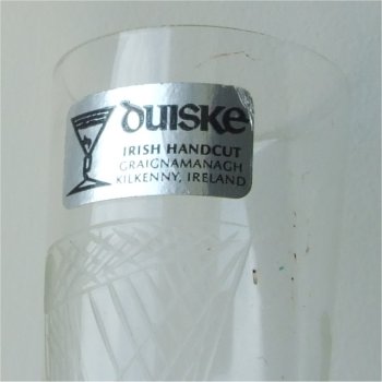 colour with black writing and states "Duiske Irish Handcut Graignamanagh Kilkenny, Ireland."