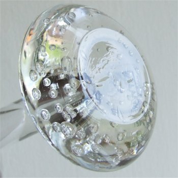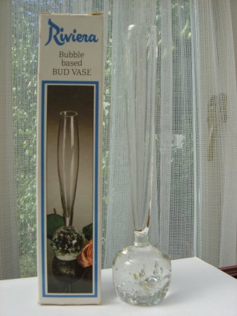 random bubbles. There is no join on the widest part of the base, but the sharp angle makes it look almost like it has been made in two halves. It has a slightly concave bottom. The stem has a narrow flare being approximately